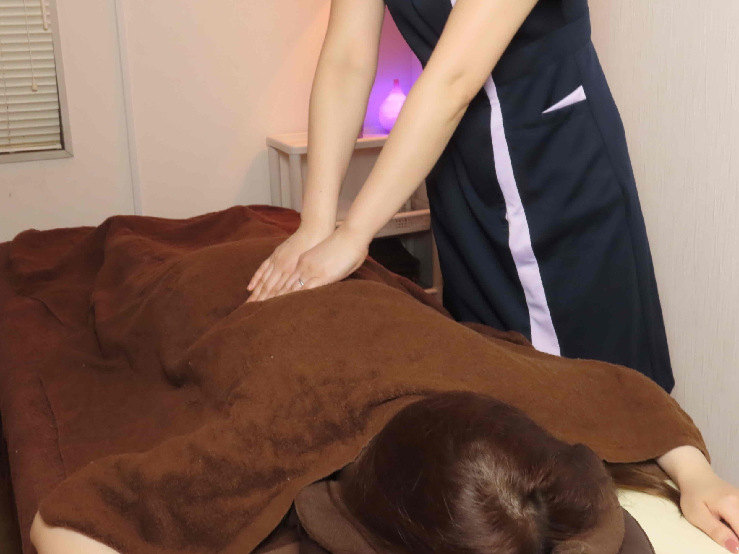 施術の際には、保温のためタオルで覆いますが、「心と心が通じ合う癒し」を提供いたします。